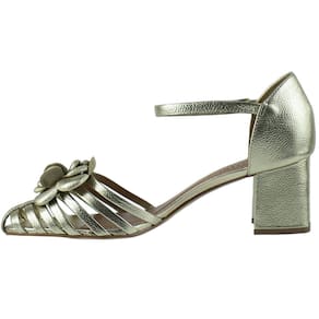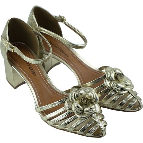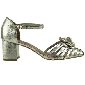 A Sandália Bottero Chappel Feminina possui um cabedal confeccionado em couro metalizado de alta qualidade, garantindo durabilidade e elegância. O formato do bico é arredondado, proporcionando conforto e um visual clássico. O estilo de fechamento é por fivela lateral ajustável, facilitando o ajuste. A abertura para calce é prática e permite fácil colocação. A construção ergonômica da peça assegura conforto prolongado durante o uso. A palmilha é acolchoada. O forro interior é feito de material macio e respirável. O solado é de borracha, conferindo durabilidade e excelente maleabilidade. O estilo da peça é clássico e versátil, ideal para diversas ocasiões. Possui um salto grosso de aproximadamente 6cm., proporcionando estabilidade e conforto. O design é refinado e atemporal, com um detalhe floral em sua parte superior. Perfeita para compor os seus looks!