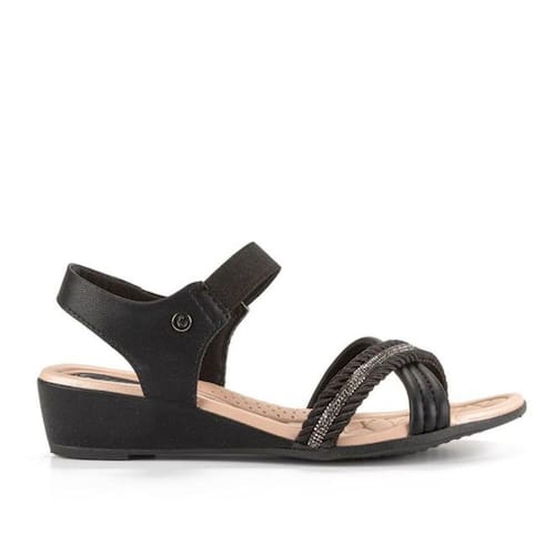 Sandália Campesí Salto Anabela Baixo Feminina Calce Fácil Preto 333708
