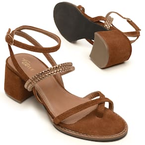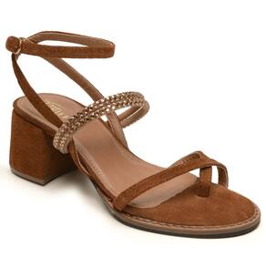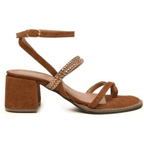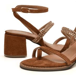 Sandália Couro Feminina Tiras Strass Ferrugem Veronica - Marrom - 38
