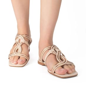O destaque deste modelo fica por conta das tiras finas entrelaçadas que envolvem os pés, criando um efeito visual delicado e elegante, enquanto a tira sem fechamentos que envolve o calcanhar permite um calce fácil. Os detalhes metalizados adicionam um toque de sofisticação e modernidade ao calçado. Já a sola rasteira garante conforto ao caminhar, tornando a Sandália Dakota Rasteira Casual Feminina ideal para ser usada por longos períodos.