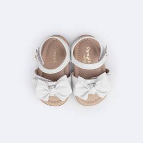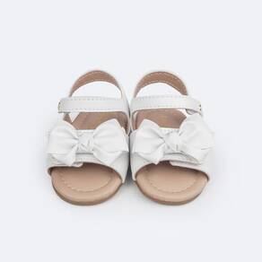 Sandália de bebê feminina em sintético branco com aplicação de laço duplo na parte frontal, uma fofura. Sandália com palmilha forrada e enchimento de espuma, dando conforto aos pezinhos sem interferir no desenvolvimento natural. A sandália infantil feminina é fácil de calçar, facilitando o dia a dia da mamãe! O solado é emborrachado e flexível, deixando as nossas bebês com mais confiança e segurança nos primeiros passinhos.