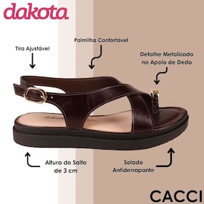 Essa sandália Dakota é a escolha ideal para quem busca unir estilo, conforto e praticidade no dia a dia. Desenvolvida com material de alta qualidade e acabamento refinado, ela traz um design moderno e feminino que valoriza qualquer produção. Seu formato anatômico se adapta com suavidade aos pés, oferecendo um calce confortável desde o primeiro uso. As tiras cruzadas abraçam os pés com delicadeza, enquanto a tira traseira com fivela ajustável garante um ajuste firme e personalizado, proporcionando segurança em cada passo.