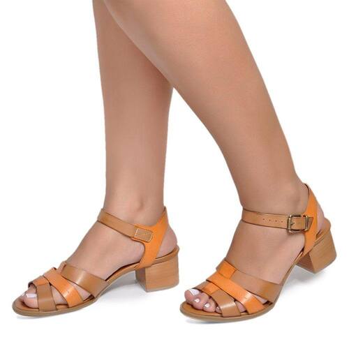 Sandalia De Salto Baixo Em Couro Whisky Laranja - 40 - Laranja