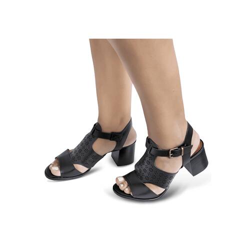 Sandalia De Salto Em Couro Preto - 33 - Preto