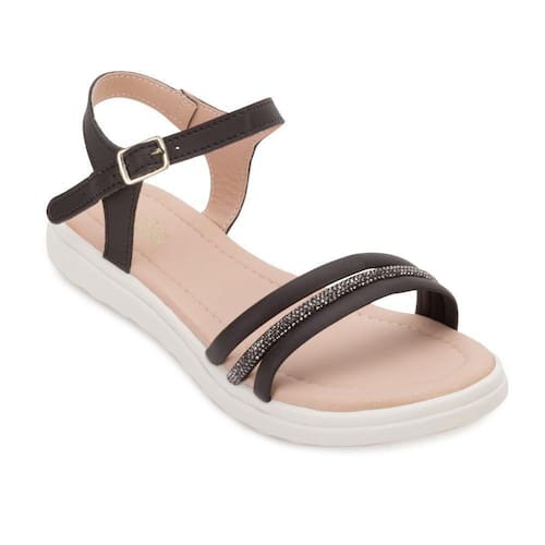 Nome: Sandália Doce Menina Infantil DM23-01061. Gênero: Menina. Indicado para: Moda - Dia a Dia. Estilo da Peça: Casual. Material Externo: Alternativo. Detalhe: Tiras lisas e outra com aplicações de strass. Fechamento: Fivela. Palmilha: Forrada e macia. Solado: Borracha antiderrapante. Peso do Produto: 441 g (o peso varia de acordo com a numeração). Garantia do Fabricante: Contra defeito de fabricação. Origem: Nacional. Código Produto: 04050557. Marca: Doce Menina. Marca: Doce Menina Ean: 7890014655760