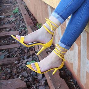 Sandália Dravanna Salto Alto Fino Bico Folha Amarelo - 36 - Amarelo