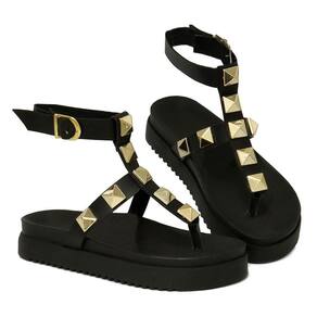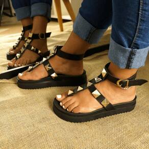 Sandália Fashion Feminina com Fivela Ajustável Ecológico Elegância Garantida - 38 - Preto