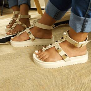 Sandália Fashion Feminina com Fivela Ajustável Ecológico Elegância Garantida - 40 - Bege