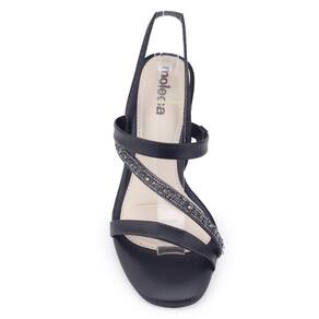 Sandália 8504.102 da Moleca é um modelo de salto médio, moderna e casual. Seu cabedal é fabricado em material sintético, tem no peito do pé 3 tiras e uma decorada com strass. O salto é médio, bloco e acabamento no mesmo material do cabedal, possui aproximadamente 5cm de altura é estável proporcionando conforto ao caminhar, o solado é emborrachado e possui frisos para maior segurança, a palmilha é fixa, almofadada e apresenta a logo da marca, o calcanhar é aberto e o fechando é por tira elástica no tornozelo facilitando o calçe, podendo ser utilizada como um tamanco. Garanta já a sua.