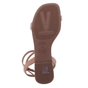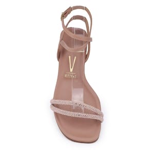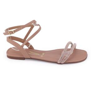 Sandália Vizzano 6447.211 é um modelo rasteiro para calçar confortavelmente. Seu cabedal é fabricado em material sintético e acabamento de tira com strass no peito do pé, tem como características bico redondo, o fechamento é por tira fina que dá a volta no tornozelo com 7 furos para o ajuste e fivela dourada, seu calcanhar é aberto e a palmilha é fixa em material sintético acolchoado tornando o sapato confortável. O seu solado é baixo e tem 0,5cm de altura, apresenta frisos para maior segurança.