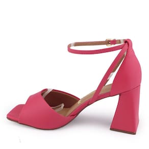 Sandália Vizzano 6464.106 é um modelo com salto grosso geométrico alto e apresenta sustentação para calçar confortavelmente. Seu cabedal é fabricado em material sintético e acabamento Pelica, tem como características bico retangular e tira única frontal com um decote contornando o peito do pé, o fechamento é por tira fina no tornozelo com 7 furos para o ajuste e fivela dourada, seu calcanhar é fechado e a palmilha é fixa em material sintético acolchoado tornando o sapato confortável. O seu salto bloco geométrico é alto e tem formato midi, o salto é revestido pelo mesmo material do calçado e tem 7cm de altura, o solado apresenta frisos para maior segurança.