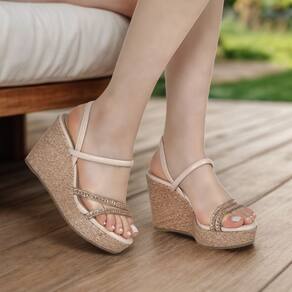 Estabilidade e segurança: solado antiderrapante e salto anabela alto em fibra, que alia estilo e firmeza ao caminhar.