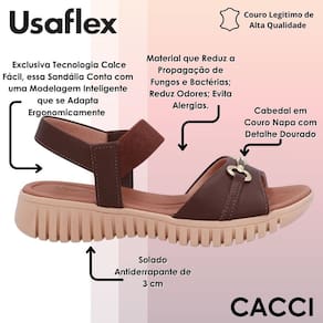 O solado leve e antiderrapante de três centímetros proporciona excelente estabilidade e absorção de impacto, acompanhando bem o ritmo das suas atividades. A sandália Usaflex combina beleza e funcionalidade, sendo perfeita para momentos de lazer, trabalho ou passeios, entregando o equilíbrio ideal entre estilo e conforto.