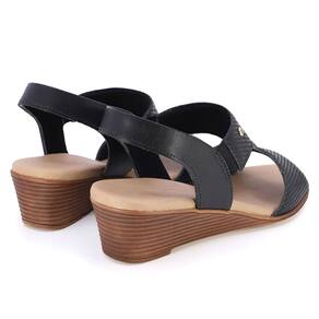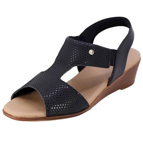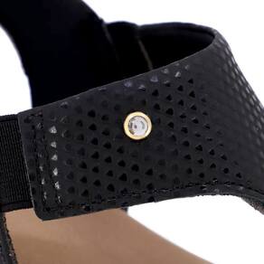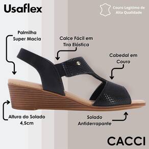 Sandália salto anabela cabedal em couro escama e napa valise. O modelo possui tecnologia Calce Fácil, com modelagem inteligente em adaptar o calçado a ergonomia dos pés.