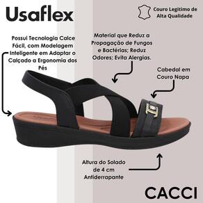 A sandália Usaflex é a combinação perfeita entre conforto, elegância e tecnologia. Desenvolvida para quem busca bem-estar durante todo o dia, ela conta com tecnologia de calce fácil e modelagem inteligente, que se adapta à ergonomia dos pés, proporcionando encaixe natural e sensação de leveza a cada passo.