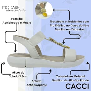 Sandália Feminina Anabela Baixa Pedrarias Conforto Modare - 41 - Branco