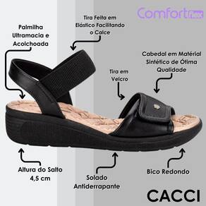 Sandália Feminina Anabela Casual Conforto Comfortflex - Preto - 35