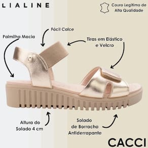 O modelo possui tecnologia Calce Fácil, com modelagem inteligente com tiras em elástico e tiras autocolante que se adapta o calçado a ergonomia dos pés. Ter uma sandália confortável em seu closet é fundamental! A Lia Line oferece modelos perfeitos para diferentes estilos e momentos. Surpreenda-se com a nossa linha Comfort com calçados confortáveis e materiais de alta qualidade!