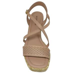 A gáspea é composta por tiras com detalhes cruzado transpassam o pé, oferecendo um design delicado e detalhado. Esse tipo de sandália é ideal para quem busca altura e conforto, além de ser uma excelente escolha para looks casuais ou mais arrumados, graças aos seus benefícios.