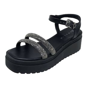 As tiras médias não só oferecem resistência, mas também são adornadas com aplicações de strass, que trazem um brilho sutil e sofisticado, elevando o seu visual a um novo patamar.