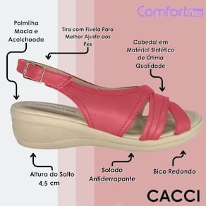 Seu solado Anabela de 4,5 cm de altura fornece mais estabilidade e com seu solado antiderrapante que trás mais segurança ao caminhar.