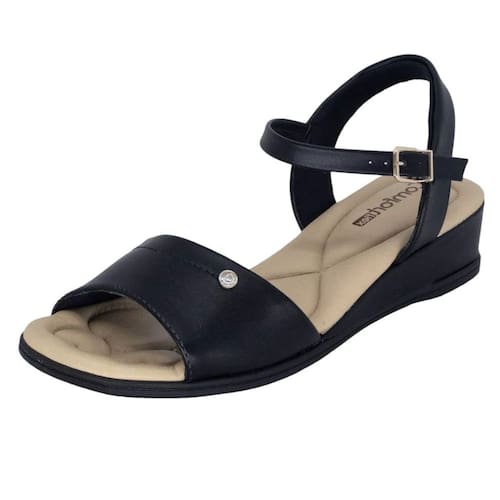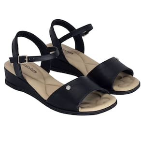 Sandália Feminina Anabela Salto Baixo Conforto Comfortflex - Preto - 36