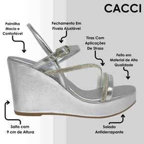 A nova Sandália Salto Anabela da Cacci é a escolha perfeita para quem busca unir elegância e conforto em um só calçado. Com um design moderno e sofisticado, ela traz o charme das tiras com detalhes em strass aplicados, que adicionam um toque de glamour ao visual. O salto anabela de 9 cm, com solado antiderrapante oferece estabilidade e segurança para que você se sinta confiante a cada passo. Ideal para compor looks que vão do casual ao elegante, essa sandália é uma combinação perfeita de estilo e praticidade.