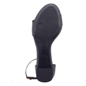Salto: médio 6,5cm de altura aproximadamente, solado com frisos para maior segurança.