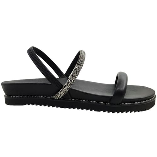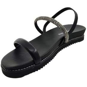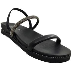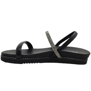 A tira coberta por strass adiciona um toque de brilho ao seu passo, fazendo você brilhar em cada ocasião. Com solado emborrachado e calce fácil, garantido pela tira elástica no calcanhar, esta sandália não só proporciona estilo, mas também segurança em cada passo, seja na cidade, na praia ou em qualquer aventura de verão.