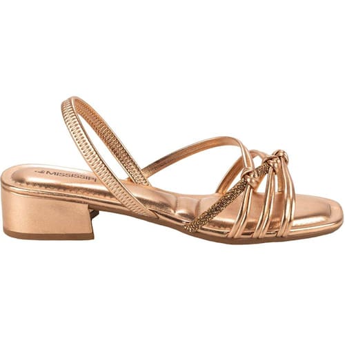 Sandália Feminina Casual Dia a Dia com Strass Tiras em Nó Salto Casual Baixo Mississipi Mi081
