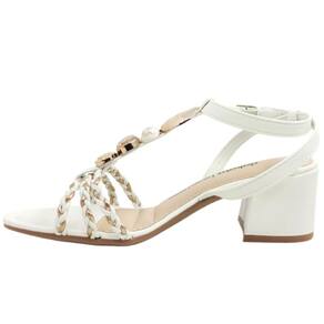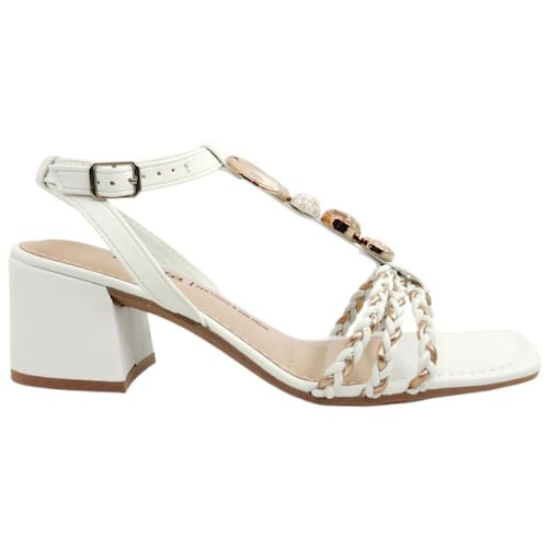 Seu destaque fica por conta dos detalhes metalizados e a pedraria aplicada sobre o pé, que adicionam um toque de sofisticação ao modelo, assim como as tranças nas tiras, que conferem um ar artesanal. Ainda conta com salto médio de 5cm, que proporciona conforto e leveza ao caminhar, ideal para os dias mais quentes, assim como o calce fácil, graças à tira maleável e sem fechamentos que envolve o calcanhar.
