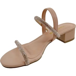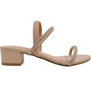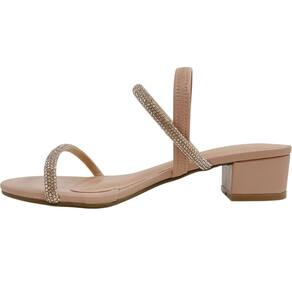 Sandália Feminina Casual Dia a Dia Passeio Trabalho Tiras com Strass Calce Fácil Salto Medio Via Marte 106-013 - 40 - Bege