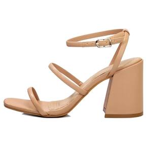Com seu salto grosso e médio, esta sandália proporciona um equilíbrio ideal entre elegância e comodidade. As tiras finas acrescentam um toque de sofisticação ao design, tornando-a versátil para diversas ocasiões.