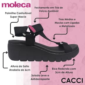 Com a Sandália Anabela Média da Moleca, você tem estilo e conforto reunidos em um só modelo, perfeito para te acompanhar com leveza e elegância onde quer que vá!