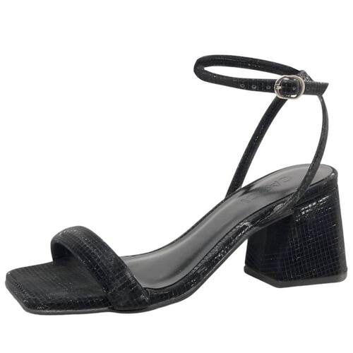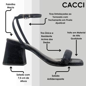 Sandália Feminina Conforto Brilho Salto Médio Moderna Cacci - 37 - Preto
