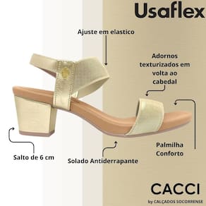 Com a sandália feminina de conforto em couro com salto médio Usaflex, modelo Y8204, você estará sempre elegante e confortável, pronta para arrasar em qualquer ocasião.