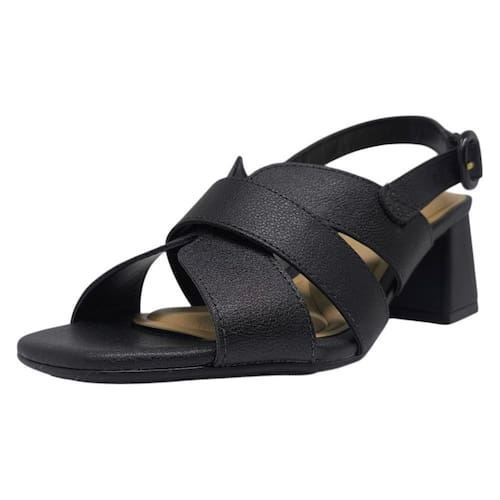 O design apresenta tiras largas que oferecem excelente ajuste e firmeza, sem apertar ou causar desconforto. Para um encaixe ainda mais seguro, conta com tira regulável na parte traseira, permitindo um calce confortável e estável. O bico arredondado complementa o visual com suavidade, enquanto o cabedal em material de alta qualidade confere durabilidade e um acabamento impecável.