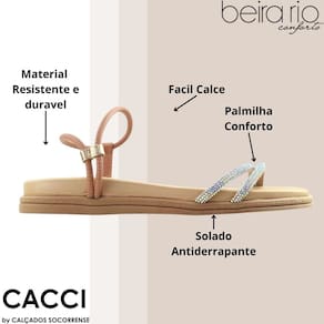 Sandalia Feminina Conforto Strass Beira Rio 8488.113 - Bege Claro - 38