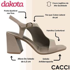 Essa sandália Dakota é a definição perfeita de elegância aliada ao conforto, ideal para mulheres que buscam um calçado sofisticado e versátil para diversas ocasiões. Produzida em couro autêntico de alta qualidade, ela garante durabilidade, resistência e um acabamento impecável que proporciona um toque refinado ao visual. Seu design moderno traz uma tira que cobre a lateral do pé, oferecendo charme e segurança, enquanto a fivela ajustável nas tiras possibilita regulagem personalizada, se adaptando facilmente ao formato de cada pé para garantir firmeza durante todo o uso. A palmilha foi desenvolvida com material confortável, pensada para oferecer maciez a cada passo, evitando incômodos mesmo em períodos prolongados de uso. O salto bloco de 6,5 cm acrescenta elegância à postura, alonga a silhueta e mantém a estabilidade necessária para caminhar com confiança. Já o solado antiderrapante assegura firmeza e segurança em diferentes tipos de superfície, tornando a experiência ainda mais completa. Essa sandália é a escolha ideal para compor looks formais, profissionais ou casuais mais sofisticados, combinando com vestidos, saias, calças de alfaiataria e até jeans, se adaptando a diferentes estilos e momentos. Seja para um dia de trabalho, um evento social ou um encontro especial, ela entrega beleza, qualidade e conforto em cada detalhe, acompanhando você com elegância em todas as ocasiões.