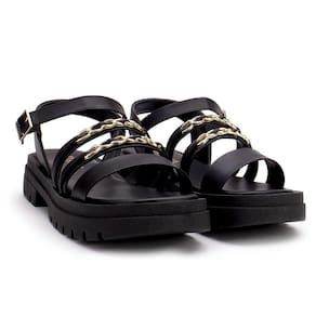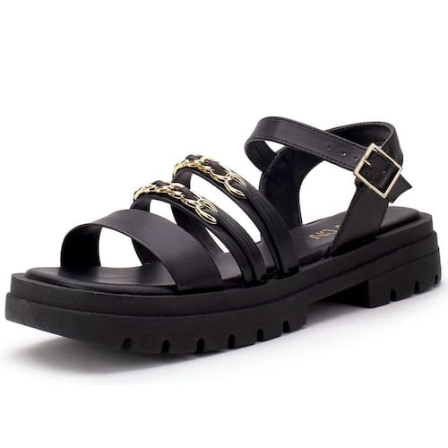 Com um solado tratorado robusto e detalhes em correntes, esta sandália oferece um visual contemporâneo e estiloso. Perfeita para compor looks ousados e modernos, seja com calças, saias ou vestidos.