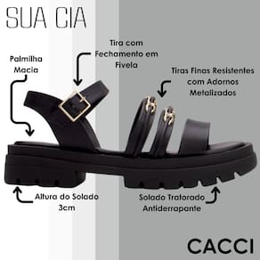 Transforme seu guarda-roupa com a Sandália Feminina Conforto Tratorada Correntes Sua Cia e sinta a diferença que um calçado elegante e confortável pode fazer. Faça seu pedido agora e eleve seu estilo com sofisticação!