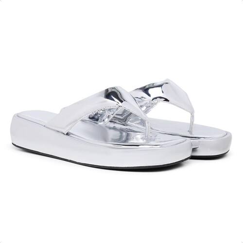 Sandália Feminina de dedo Metalizada Moderna Estilo Flat - 36 - Prata