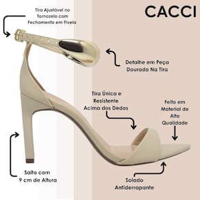 Apresentamos a você esta linda Sandália de Salto Cacci, com detalhes que farão você se encantar! Feita em materiais de alta qualidade que proporcionam ótimas experiências para você!