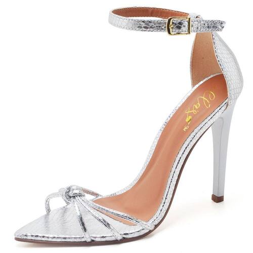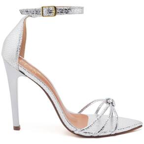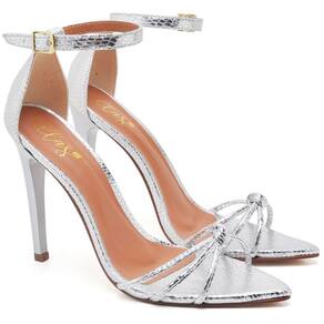 Sandália Feminina Ellas Online Salto Alto Bico Folha Cristal Prata - 34 - Prata