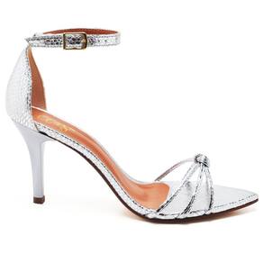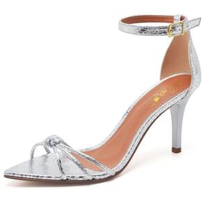 Sandália Feminina Ellas Online Salto Médio Bico Folha Cristal Prata - 36 - Prata