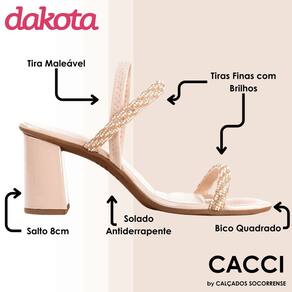 A Sandália Dakota de Salto Bloco é uma escolha deslumbrante para mulheres que desejam um calçado sofisticado e cheio de estilo. Com um salto bloco alto de 8cm, esse modelo proporciona elegância sem comprometer o conforto. O design é composto por tiras finas e o destaque fica por conta dos brilhos aplicados nas tiras sobre o peito do pé, adicionando um toque de glamour à sandália.