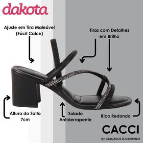 A Sandália Dakota de Salto Bloco elegante e prática para diversas ocasies. Feita com tiras finas delicadamente envolvendo o pé, chama atenção especialmente pelas tiras com brilhos, que conferem um toque sofisticado. Além de seu apelo estético, essa sandália também oferece conforto e praticidade, graças tira elástica sem fechamentos que envolve o calcanhar. Fabricada com material sintético de alta qualidade, alia durabilidade e estilo.