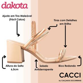 A Sandália Dakota de Salto Bloco com Brilhos é elegante e prática para diversas ocasiões. Feita com tiras finas delicadamente envolvendo o pé, chama atenção especialmente pelas tiras com brilhos, que conferem um toque sofisticado. Além de seu apelo estético, essa sandália também oferece conforto e praticidade, graças à tira elástica sem fechamentos que envolve o calcanhar. Fabricada com material sintético de alta qualidade, alia durabilidade e estilo.