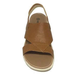 Sandália Feminina Flat Conforto Elástico Couro New Face - 40 - Bege Claro