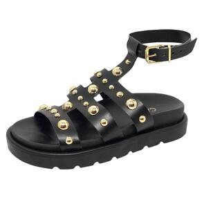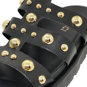 Suas tiras resistentes junto a pins dourados aplicados incrivelmente exuberante que destaca a silhueta dos pés de forma elegante. Essa sandália foi criado para proporcionar um encaixe perfeito e seguro em qualquer momento. São esses pequenos detalhes que fazem toda a diferença, transformando seu look em algo verdadeiramente especial.